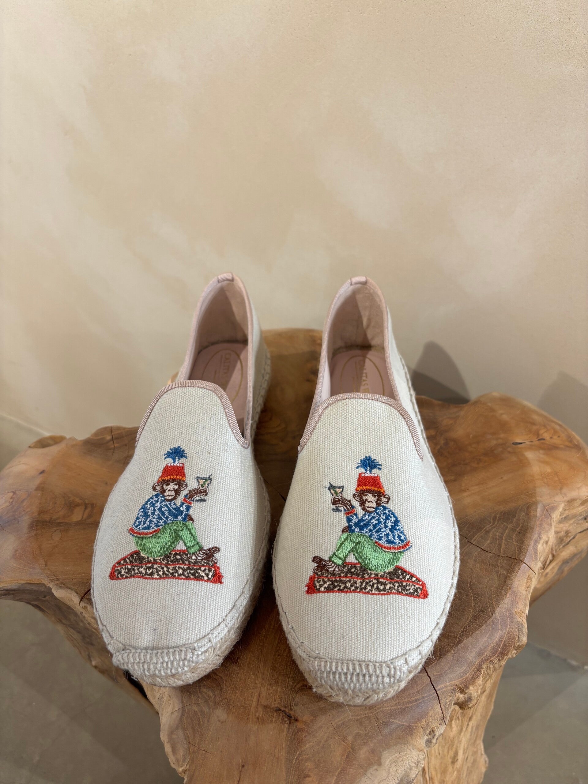 Witte espadrilles met aapjes van het merkje Calita Shoes.