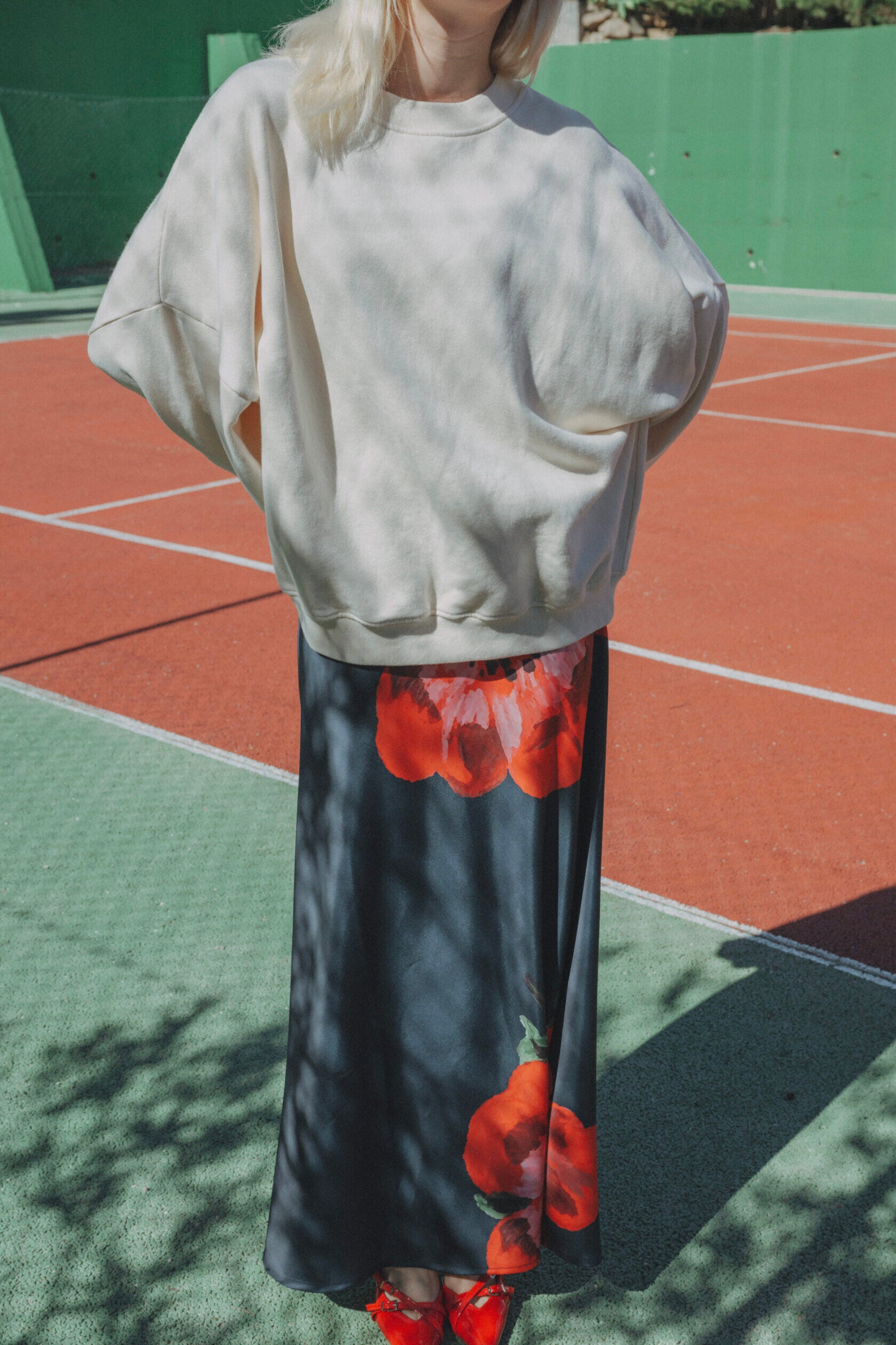 Beautiful skirt in navy with poppy flower print