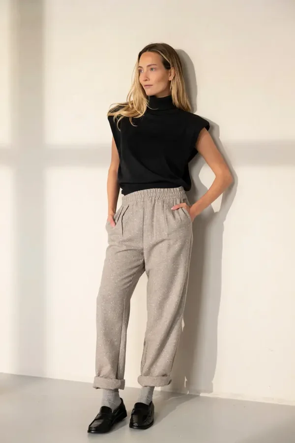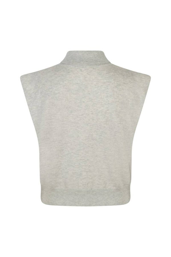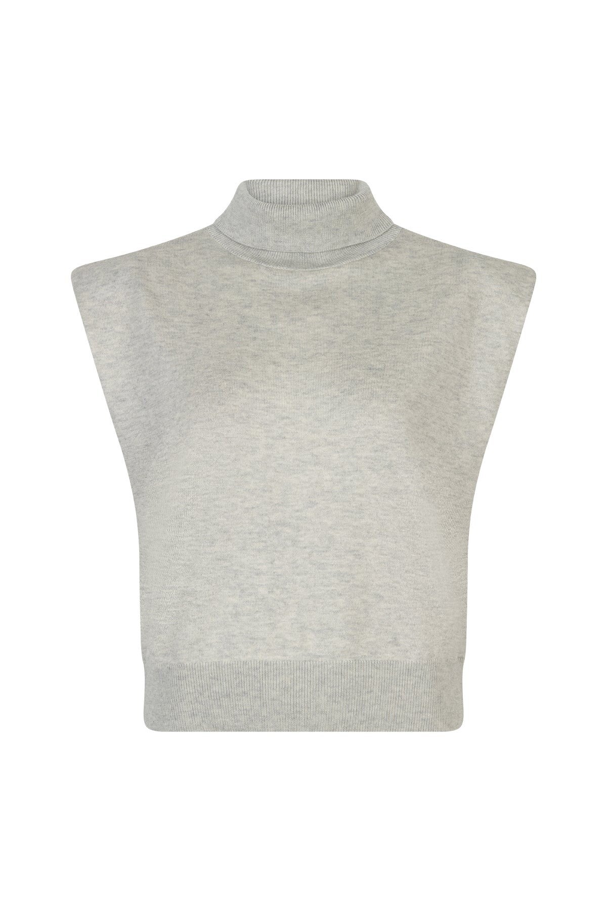 de Vadim mouwloze col top anthracite is gemaakt van een heel zachte duurzame merino wolmix. Hele jaar door te dragen, leuk alleen maar ook fijn als laagjeonder iets, zoals de sand Perre blazer blouse