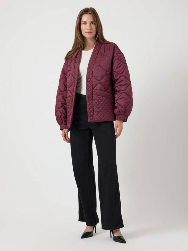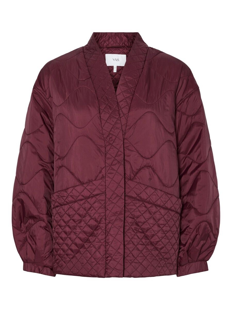 Bordeaux gewatteerd jasje van YAS met drukknopen. Valt eerder ruim. Elastiek aan de mouwen.