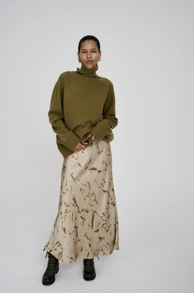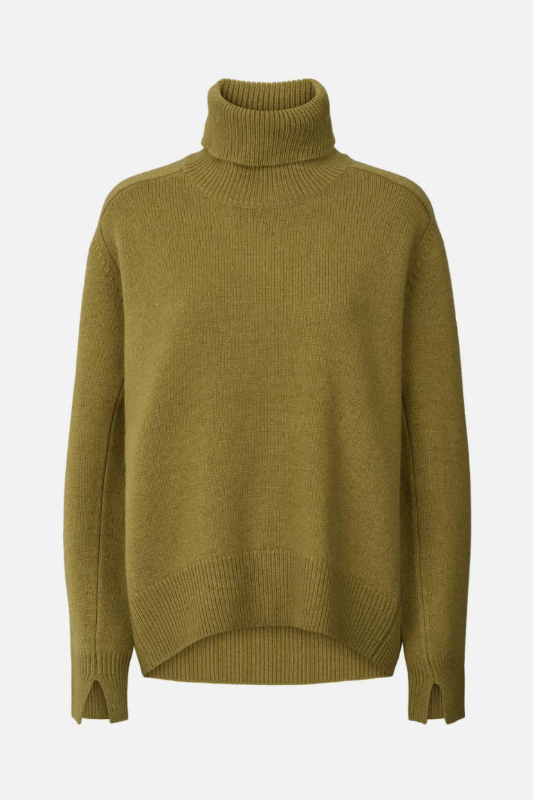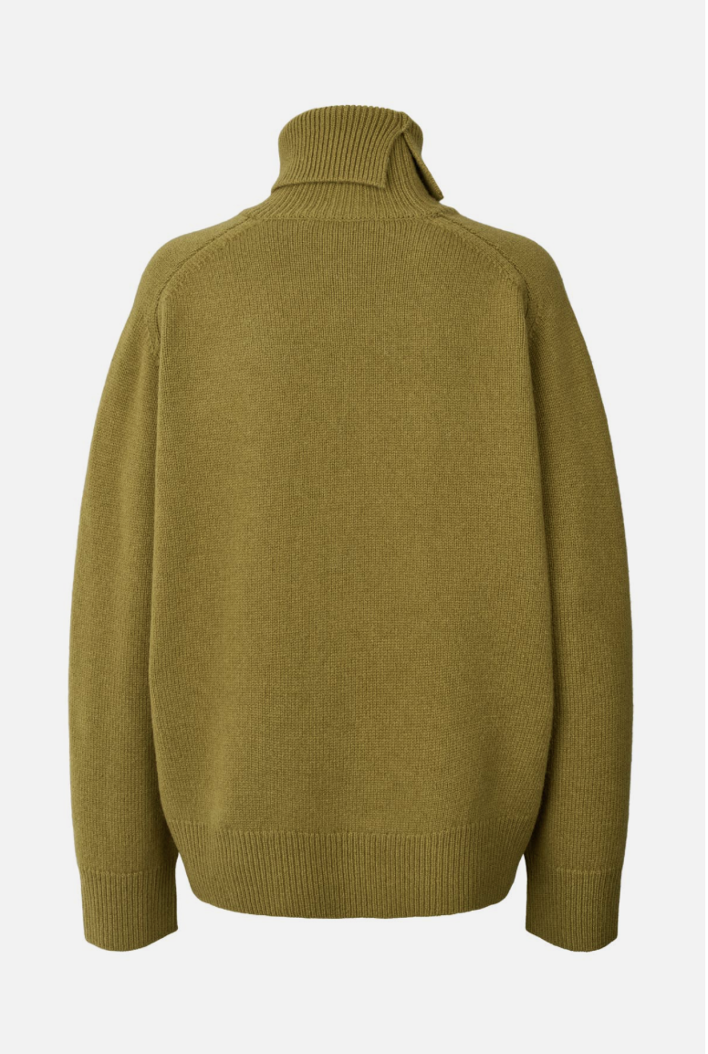 Deze gebreide coltrui is gemaakt van zachte wol en heeft een ontspannen pasvorm met een col met een opening aan de achterkant en lange mouwen met geribbelde randen en openingen.