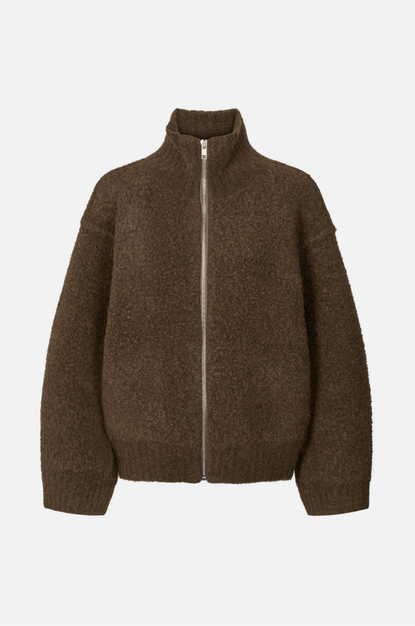 Het sheep knit jack met hoge kraag is gemaakt van een warme, pluizige en uiterst zachte wolmix, waardoor het de perfecte binnen- of buitenjas is tijdens het koude seizoen.