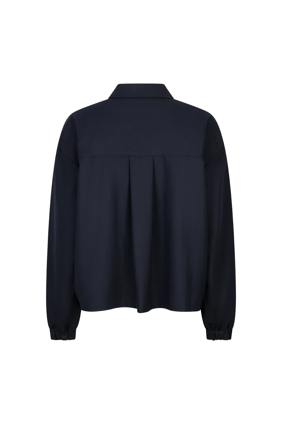 De Perrine blouse in night blue kleur met kraag en elastiek in manchet is een comfortable blouse gemaakt van een soepele ecovero viscose blend. Staat ook leuk over een broek en zorgt in combinatie met de Perce pants in dezelfde kwaliteit en kleur voor een actueel en prachtig pak!