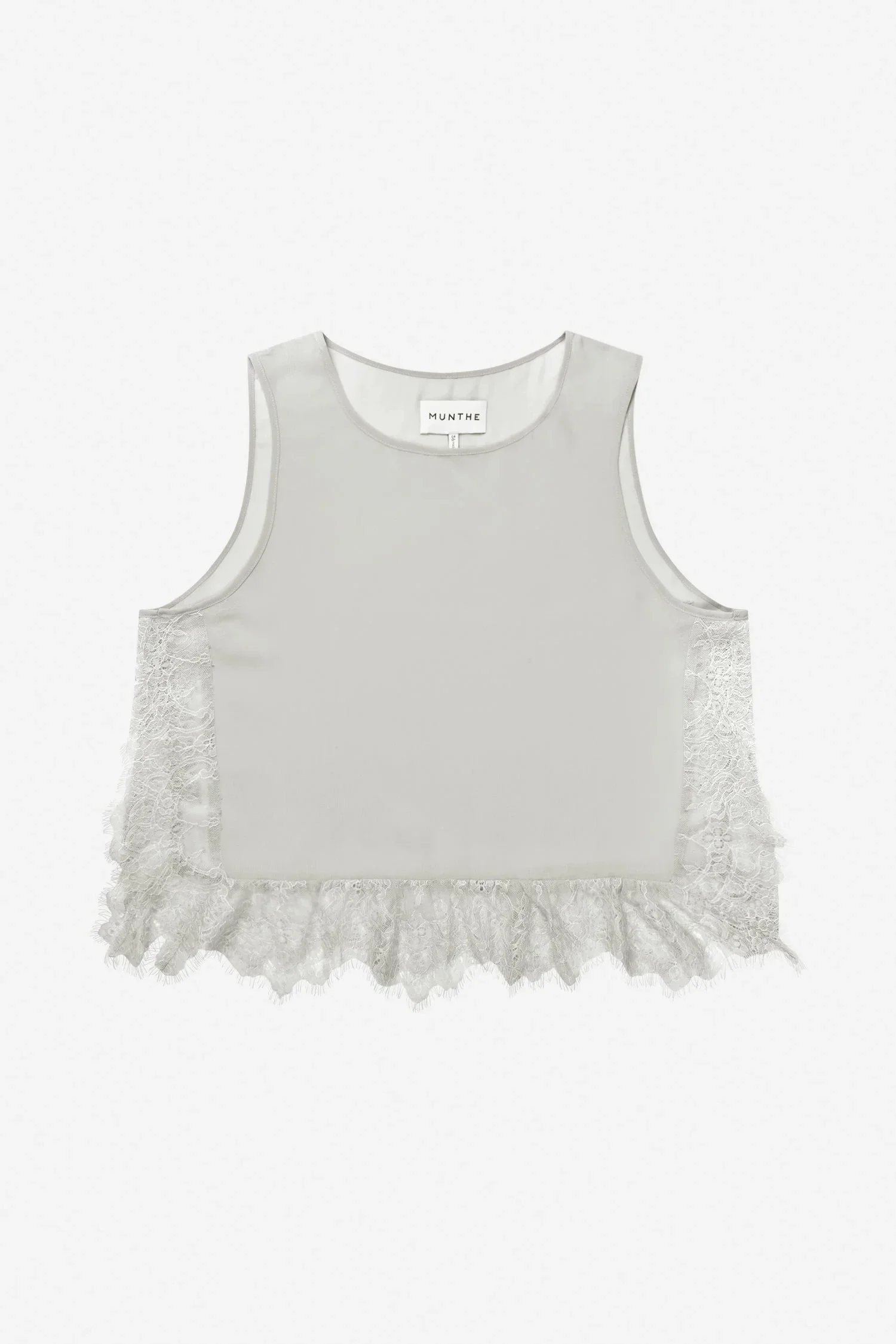 T-shirt bestaande uit twee prachtige delen: een klassiek, kort T-shirt en een elegante kanten top die samen in lagen gedragen kan worden of afzonderlijk. Het T-shirt is ontworpen met zijslits van MUNTHE.
