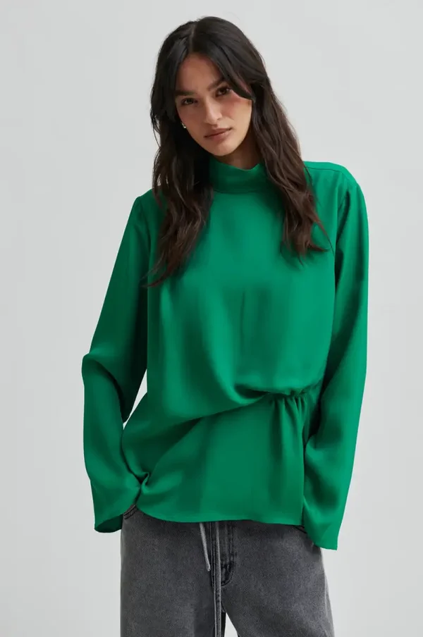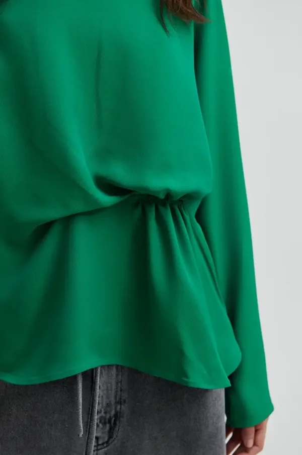 Second Female blouse with waist detail. The blouse is made in a smooth viscose blend. Featuring a keyhole opening at the back with button fastening. Pleat at one shoulder and gathers at one side. Long sleeves. Regular, straight fit.