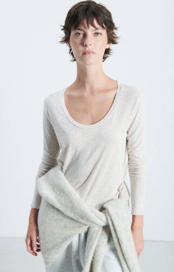 Het Jacksonville-T-shirt voor dames heeft een verleidelijke gevlamde katoen-viscosestof die licht glanst en vrouwelijkheid en luchtigheid toevoegt aan je outfit. Dit iconische item voelt zacht aan en kan op zichzelf worden gedragen, onder een trui of onder een jasje voor een eenvoudige, authentieke look.